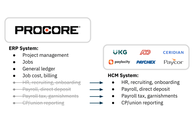 Through HCM TradeSeal, you can connect the following payroll systems to Procore.